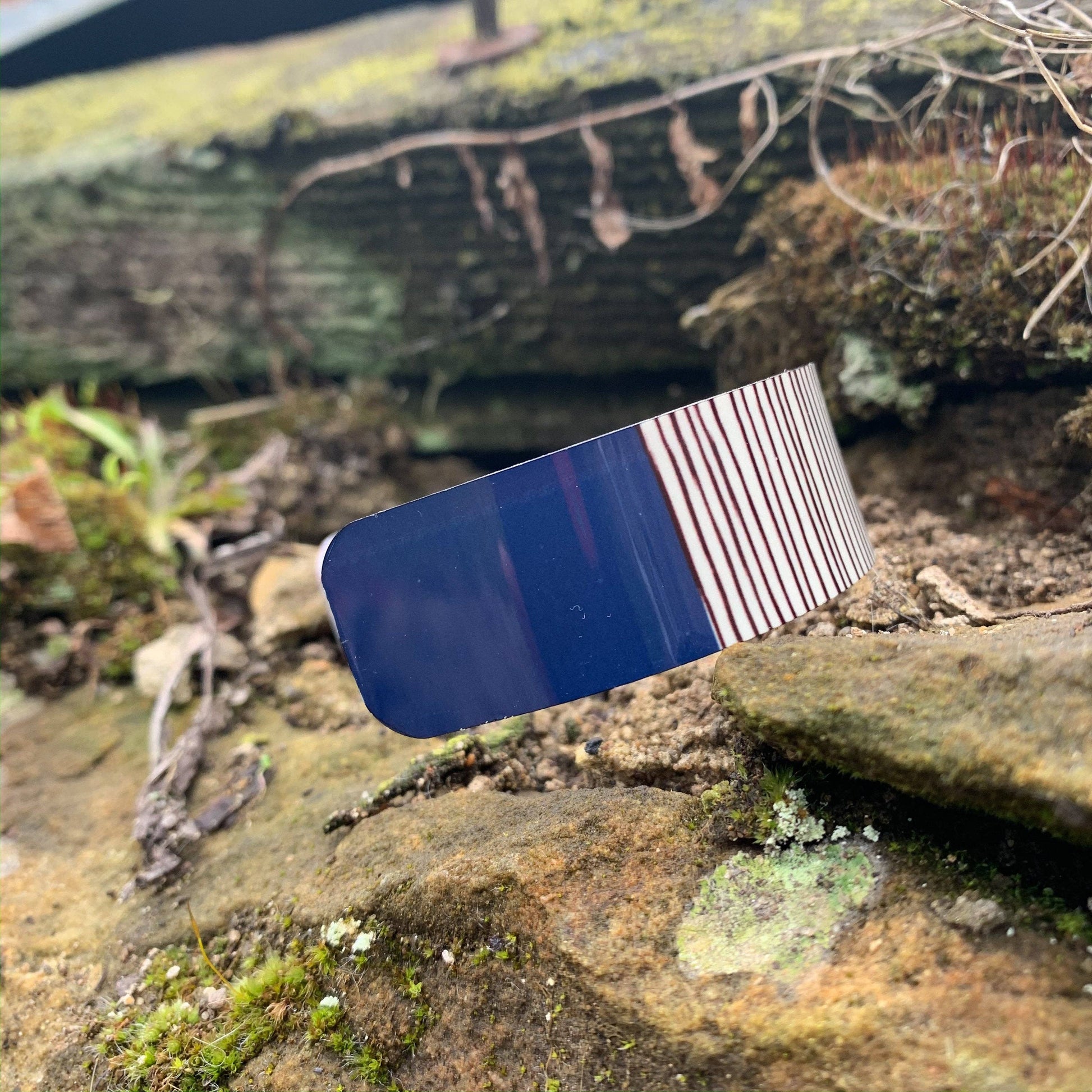 Hand printed statement , Jenni Douglas designed cuff bracelet. Made from lightweight, hypo-allergenic aluminium. Matching Earrings and Necklace available.