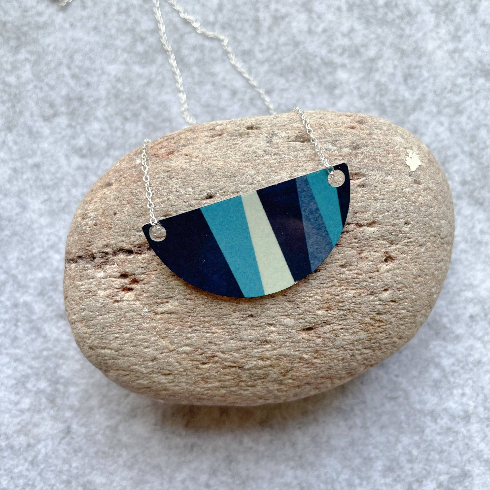 An easy to wear, statement necklace featuring distinctive hand printed designs. Sterling Silver 18" chain.
